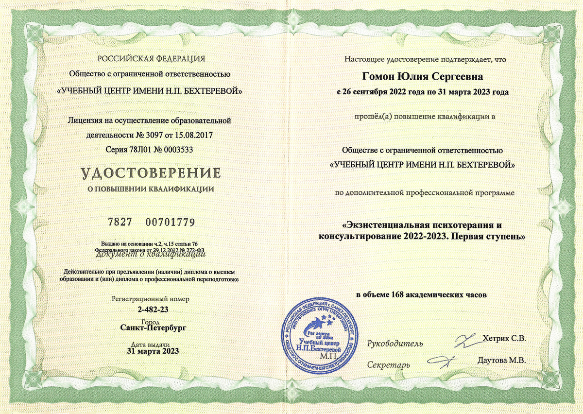 - Являюсь членом Восточно-европейской ассоциации экзистенциальной терапии (ВЕАЭТ)